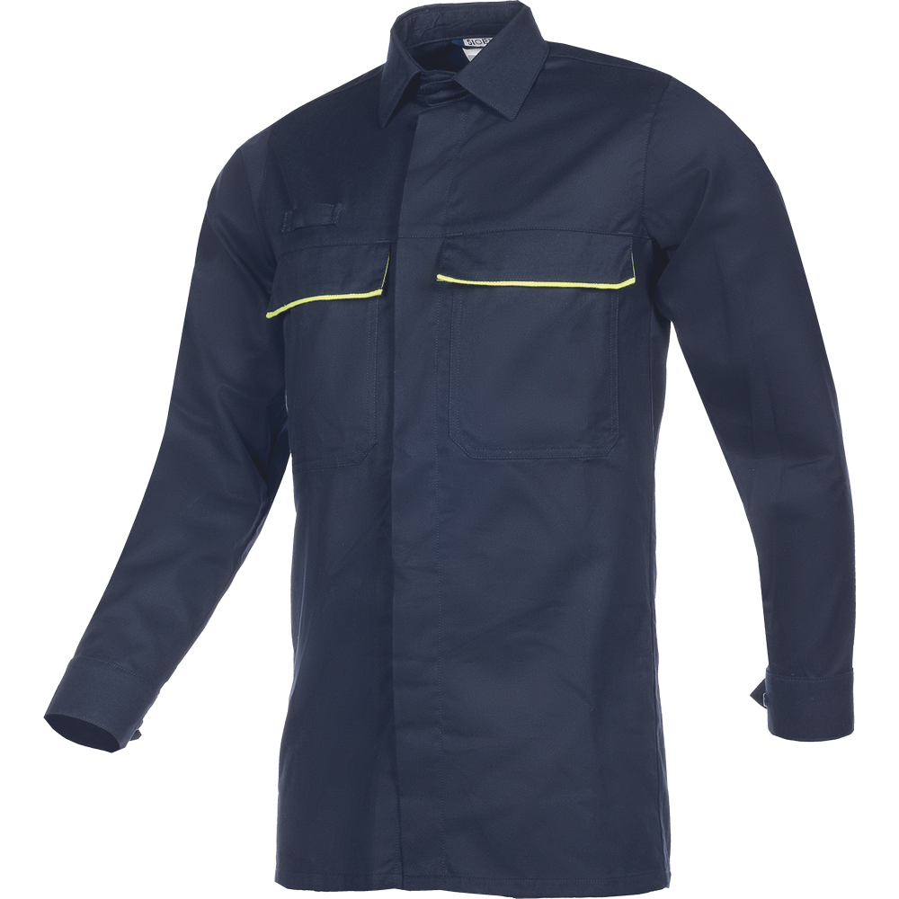 – moška majica z zaščito ARC – negorljiva in antistatična – zapiranje s skritimi zatiči pod zavihkom – zračna tkanina z odličnimi lastnostmi uravnavanja vlage – 2 prsna žepa, zaprta s zatiči – pokrov zavihka s kontrastno obrobo – rokav z zatiči