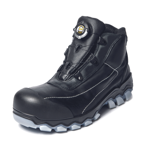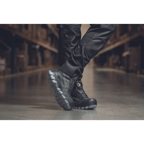 – varnostni gležnjarji z nekovinskim pokrovom prstov in vložkom iz kevlarja, odpornim proti predrtju – podplat iz PU/TPU – zgornji del iz visokokakovostnega zrnatega usnja – edinstveno hitro zapenjanje z zaskočnico
