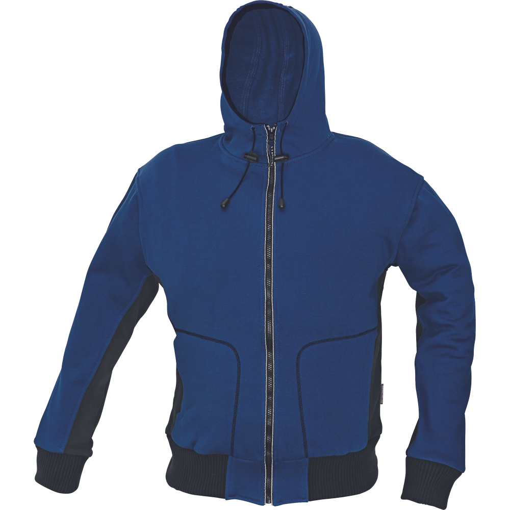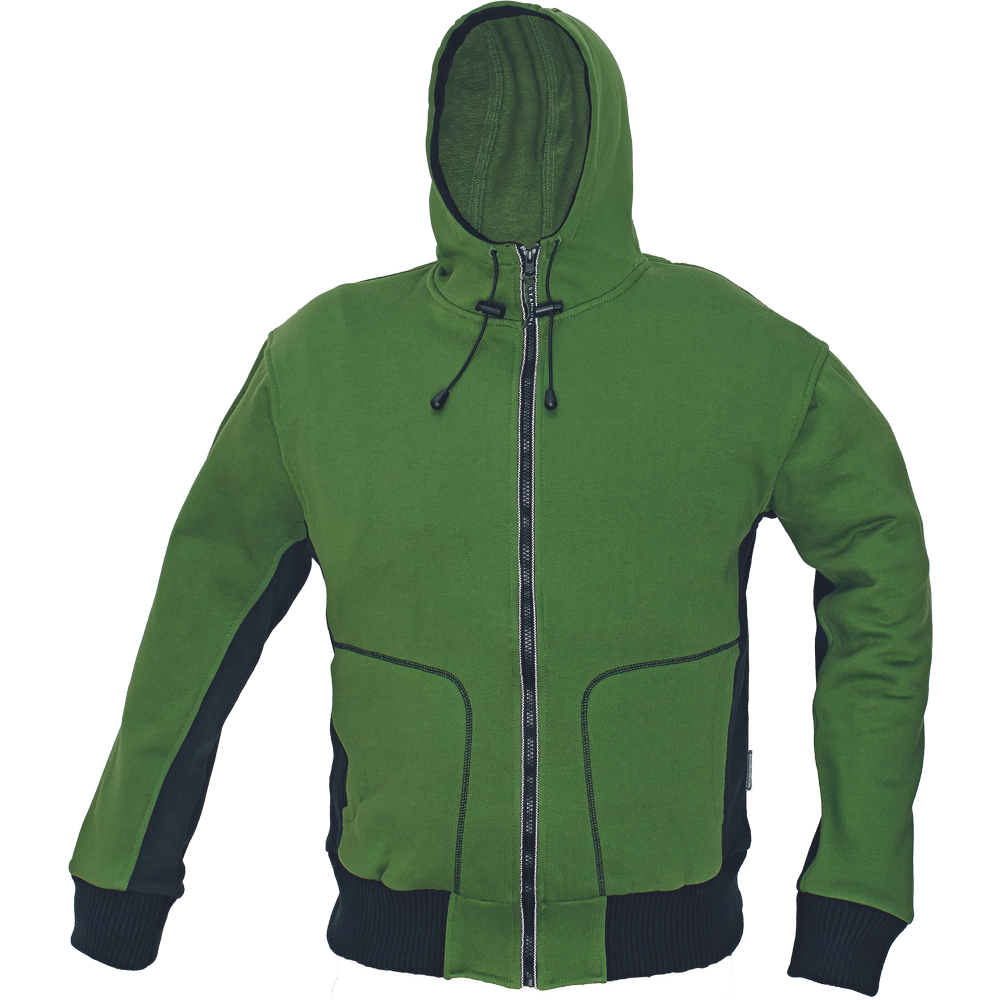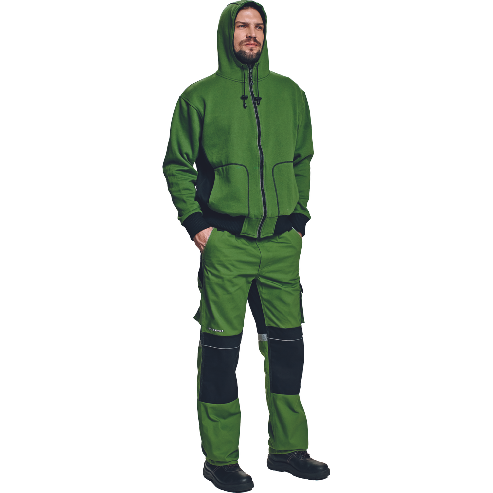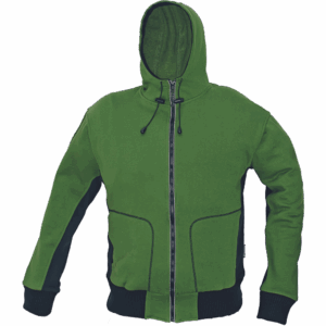 – kapuca z nastavljivo elastično vrvico v kapuci in zadrgo – 2 velika sprednja žepa – spodnji rob in manšete rokavov iz zelo široke rebraste pletenine z deležem elastana