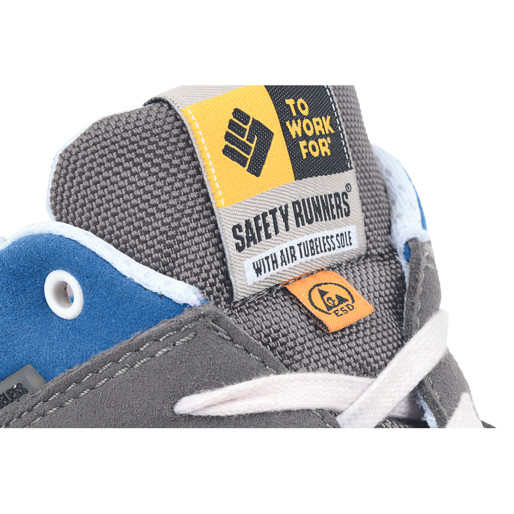 – varnostni čevlji ESD z aluminijastim prstnim pokrovom in vložkom iz kevlarja, odpornim proti predrtju – antistatični – protizdrsni – na olje odporen gumijast podplat s sistemom Air Tubeless za večje udobje uporabnika – zgornji del iz mikrovlaken