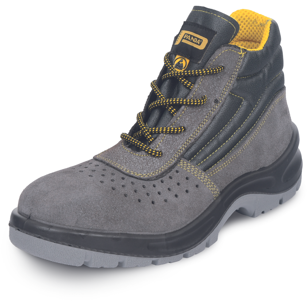– varnostni gležnjarji s kompozitno kapico in vložkom proti predrtju – antistatični podplat iz poliuretana dvojne gostote, ki je odporen na olja in obrabo – zgornji del čevlja je izdelan iz brušenega usnja, notranja podloga pa iz zračnega mrežastega materiala Airnet – ESD