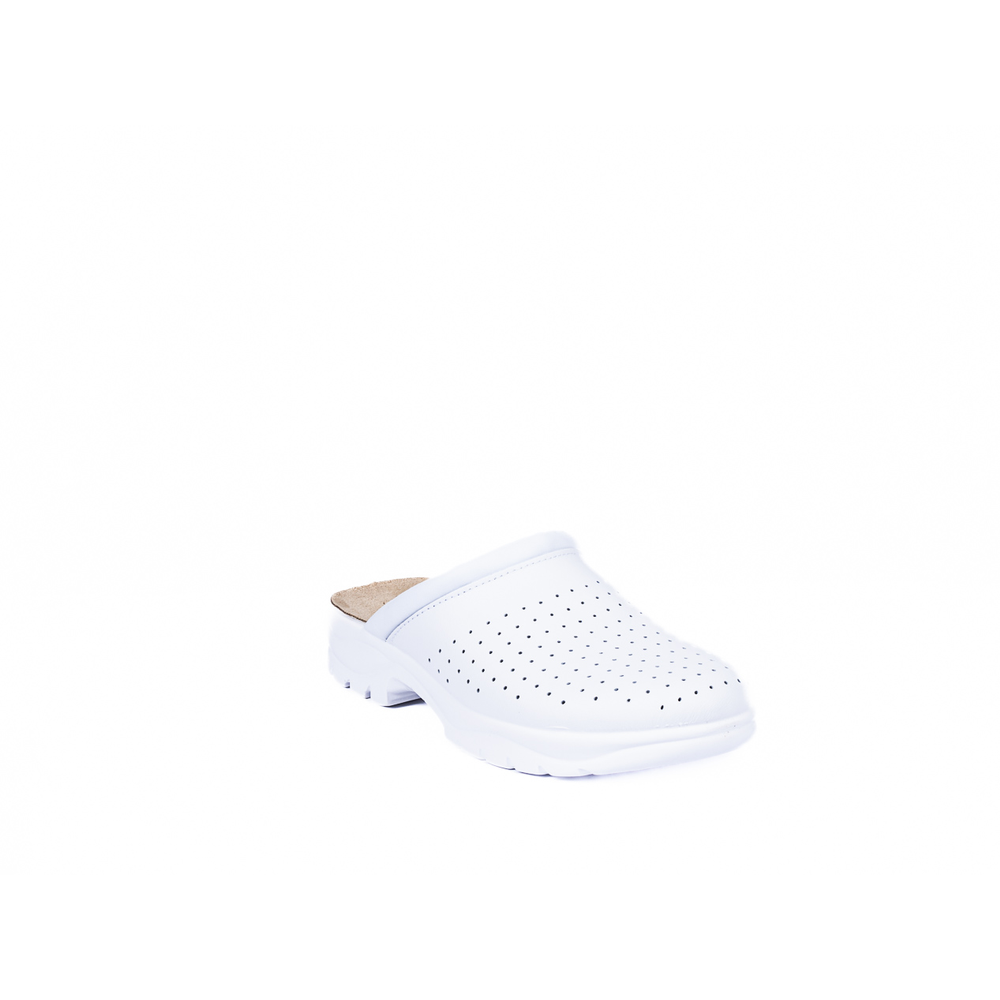 Ženski copati. Udoben PU podplat, opremljen s semišem. Perforiran zgornji del je izdelan iz prevlečenega usnja.