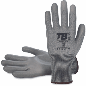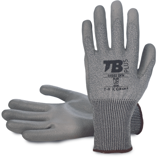 – rokavica s sivo brezšivno podlogo iz HPPE in steklenih vlaken – siva poliuretanska prevleka na dlani – pleteno zapestje – širina 13