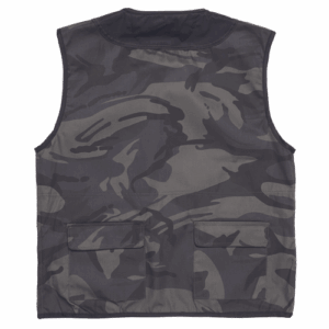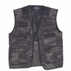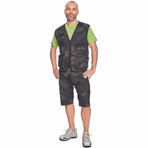 – moški telovnik iz lahkega keperja – delno podložen z najlonsko mrežo – 11 žepov, od tega 2 na zadnjem delu bokov in 1 žep za telefon – zapiranje na zadrgo