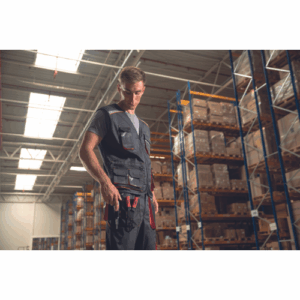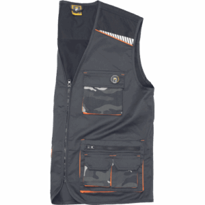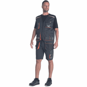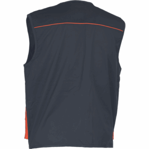 – Moški delovni telovnik iz zelo trpežne raztegljive tkanine – zadrga spredaj – večnamenski žepi – ojačane ramenske površine Oxford 600D – potiskani odsevni elementi
