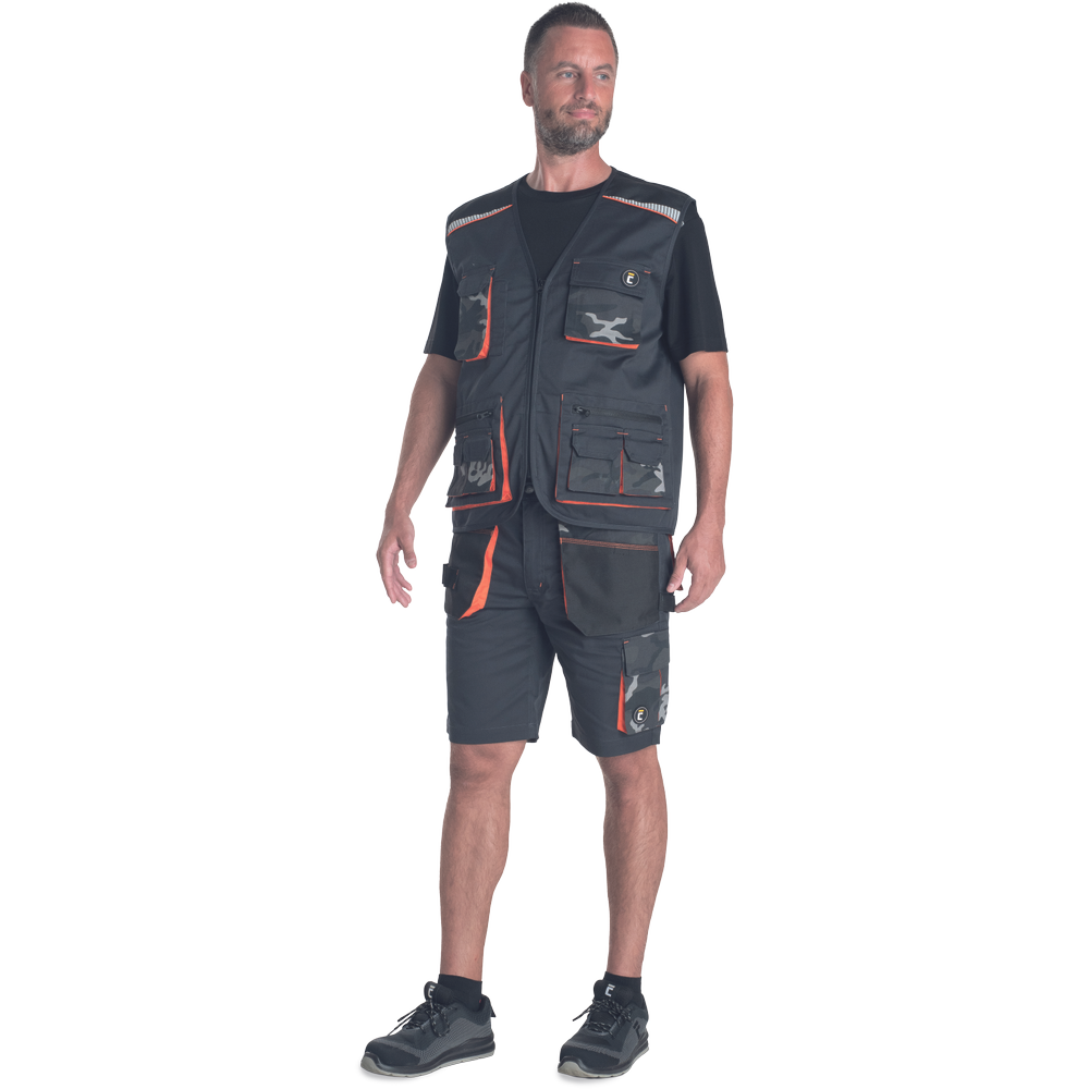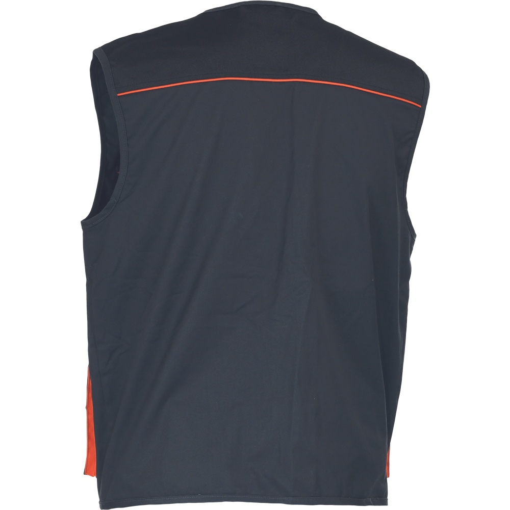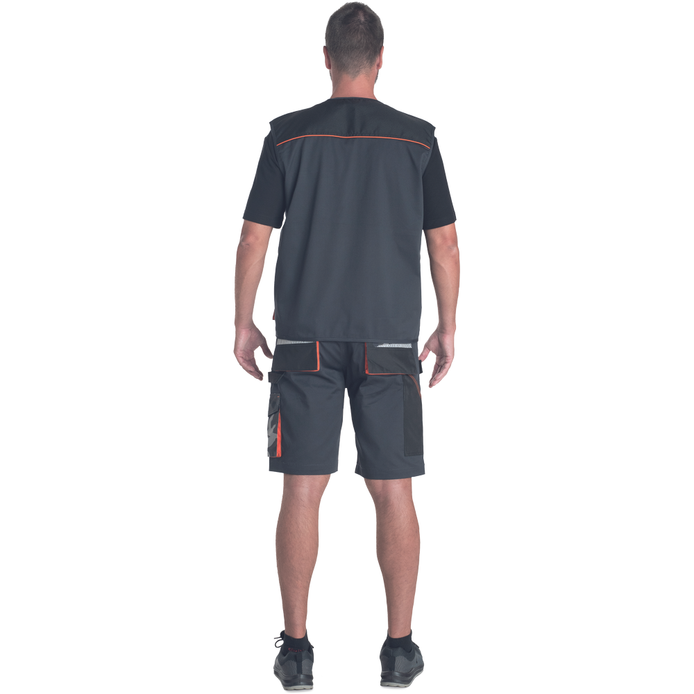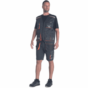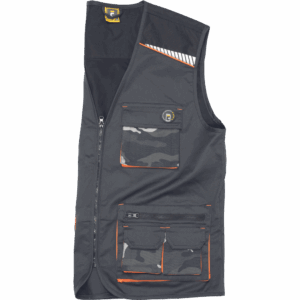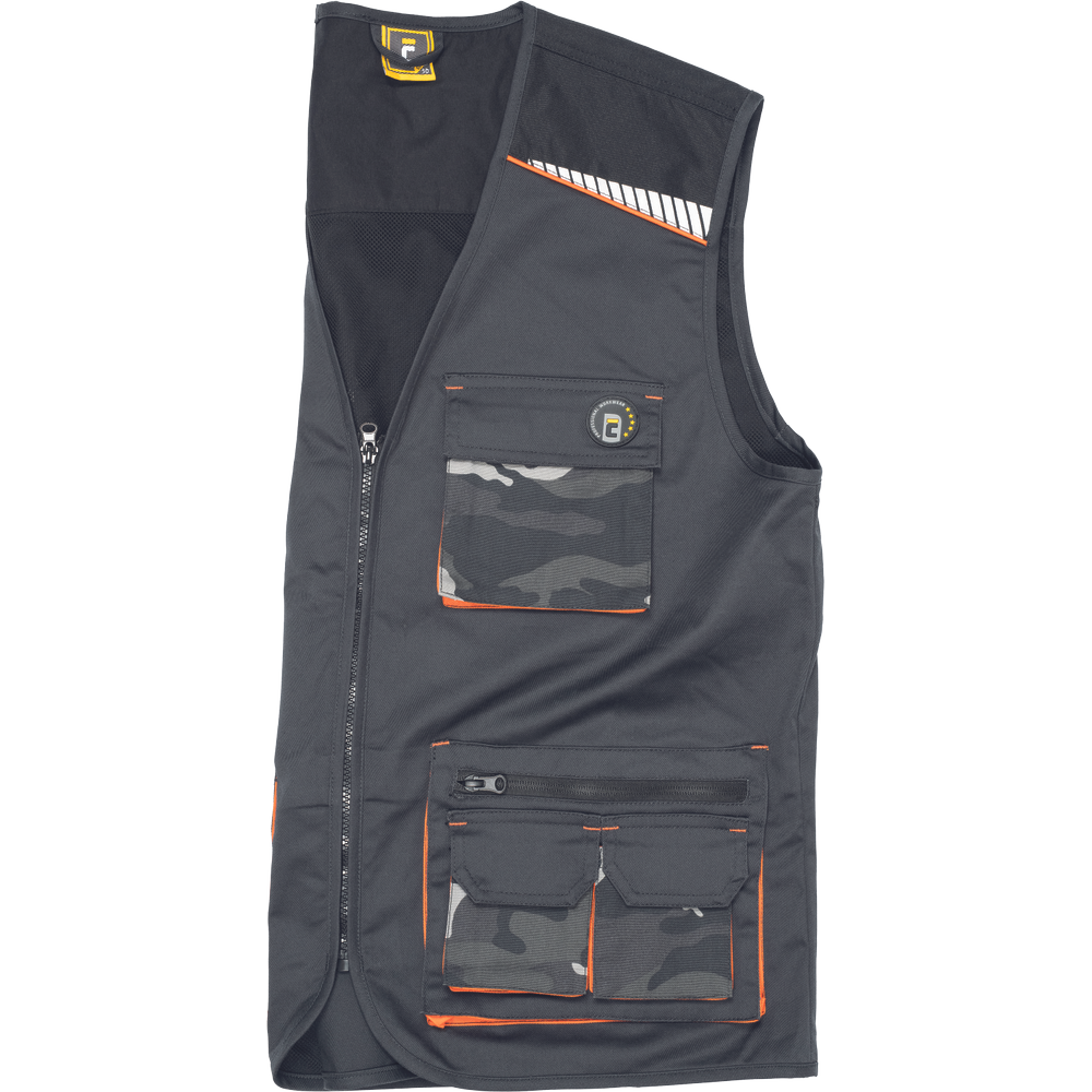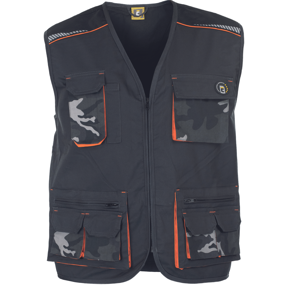 – Moški delovni telovnik iz zelo trpežne raztegljive tkanine – zadrga spredaj – večnamenski žepi – ojačane ramenske površine Oxford 600D – potiskani odsevni elementi