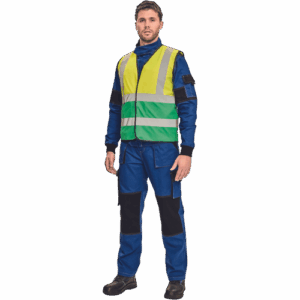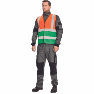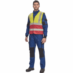 – telovnik HI-VIS v kombinaciji s številnimi različnimi kontrastnimi barvami za spodnji del – odsevne črte na ramenih ter okoli pasu in pasu – zapiranje z velcro