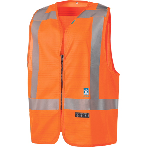 – negorljiva, antistatična jopica HI-VIS – V vrat – zapiranje na zadrgo – 5 cm negorljivega odsevnega traku