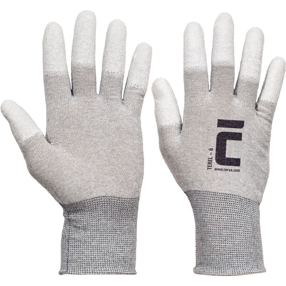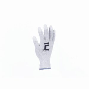 – pletene antistatične brezšivne rokavice iz najlona z vgrajenimi ogljikovimi vlakni – poliuretanska plast na konicah prstov – elastična manšeta