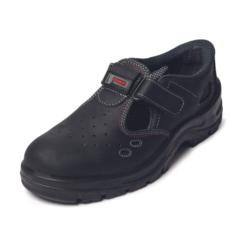 Varnostni sandali brez jeklenega prstnega pokrova z antistatičnim, protizdrsnim in na gorivo odpornim podplatom, absorpcijo energije v peti in dihajočim usnjenim zgornjim delom.