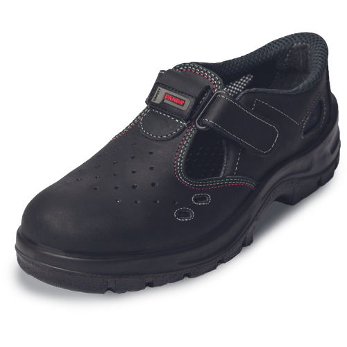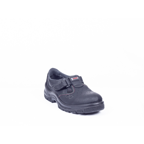 Varnostni sandali z jeklenim prstnim pokrovom, antistatičnim, protizdrsnim in na gorivo odpornim podplatom, absorpcijo energije v peti in dihajočim usnjenim zgornjim delom.