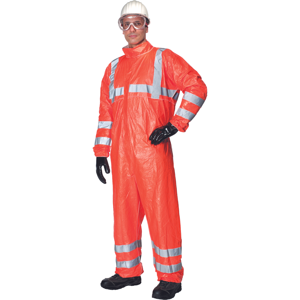 – Zaščitni kombinezon HI-VIS tipa 5/6 z ovratnikom – zaščita pred trdnimi delci in omejenim brizganjem tekočin – primeren za delo na področju vzdrževanja cest in železnic, letališč, nafte in plina, rudarstva, ravnanja z odpadki, reševanja itd. – prešiti šivi, elastične manšete, gležnji in pas – notranja antistatična obdelava