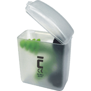 oblikovani, pralni, žično povezani ušesni čepki z ročajem za vstavljanje in štirimi zelo mehkimi lamelami, ki so zelo prijetni za kožo in primerni za skoraj vse velikosti sluhovoda; ohišje za shranjevanje z možnostjo pritrditve na pas; EN 352-2