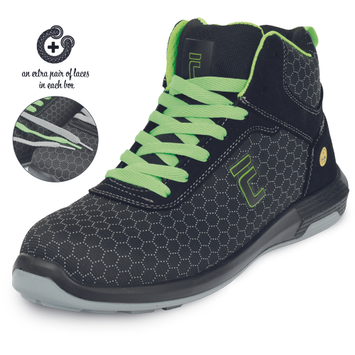 | Značilnosti | Absorpcija energije v območju pete – E, Antistatični čevlji – A, Brez kovin – MF, Esd – elektrostatična razelektritev (EN 61340), Nekovinski varnostni pokrovček za prste – S, Nekovinski vmesni podplat z antiperforacijo – PL, PS, Podplat proti zdrsu – SR, Zaščita pred prodiranjem in vpijanjem vode – WPA, Zgornji del, ki diha |