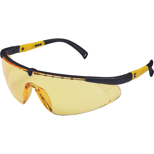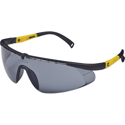 Športna očala optičnega razreda 1 s polikarbonatnimi lečami s premazom proti praskam in megli (razred F v skladu s standardom EN 166), zaščito pred majhnimi energijskimi udarci in nastavljivo dolžino templjev. Rumena leča ima filter za zaščito pred UV-žarki v skladu s standardom EN 170, siva leča ima filter za sončna očala v skladu s standardom EN 172.