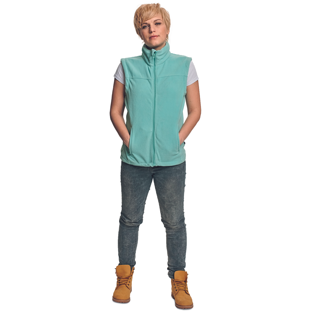 – damski telovnik iz flisa klasičnega kroja z dvema stranskima žepoma – antipilling obdelava na zunanji strani – primeren za tiskanje in vezenje