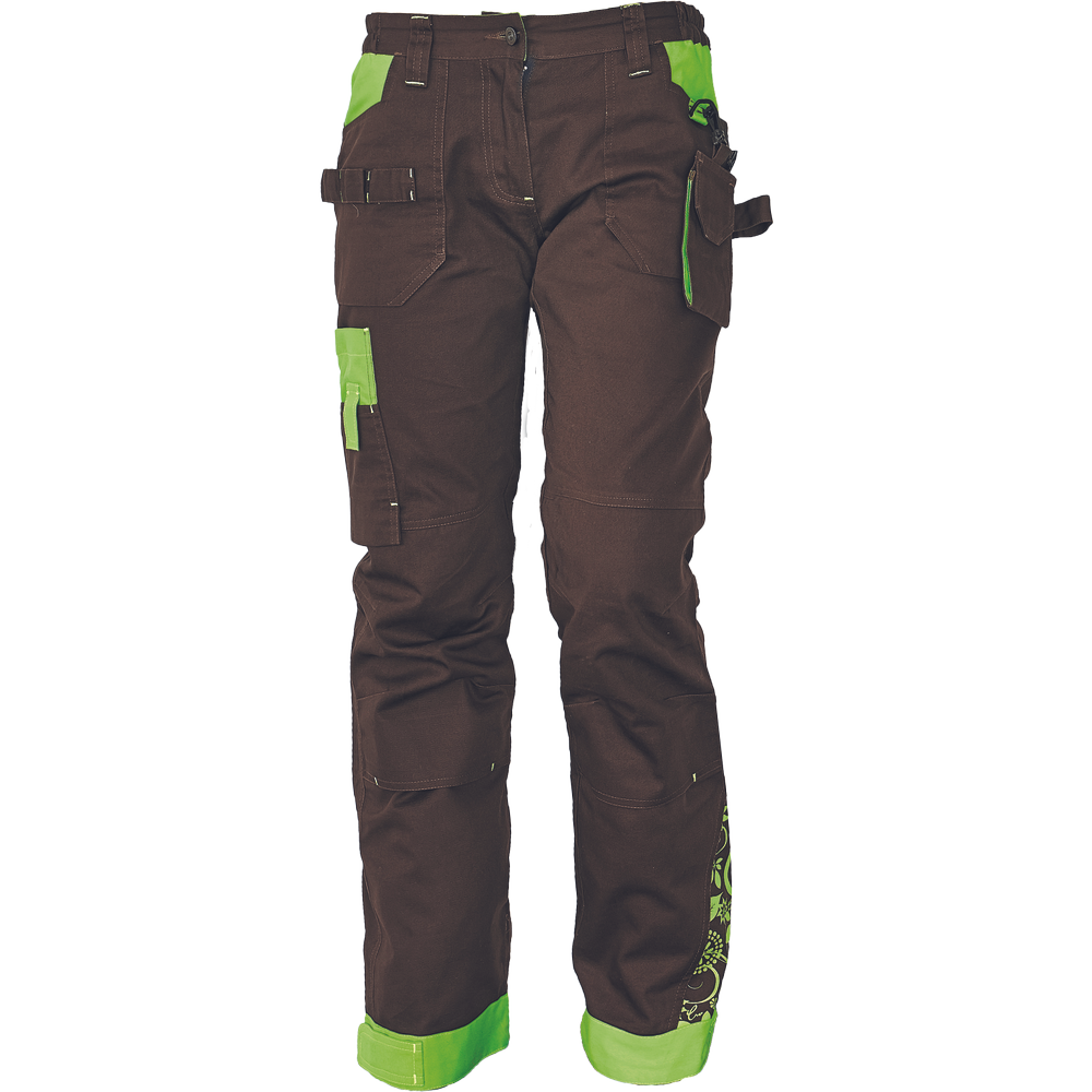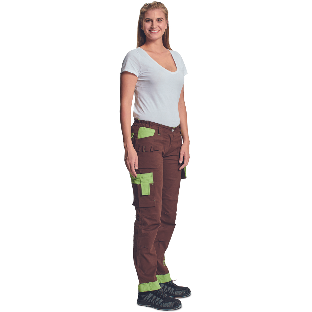 – ženske hlače z elastičnim pasom za celodnevno udobno uporabo – 5 funkcionalnih žepov – ojačani kolenski deli z žepi za vstavljanje kolenskih blazinic – nastavitev spodnjega roba z velcro – primerne tako za prosti čas kot za delovne dejavnosti