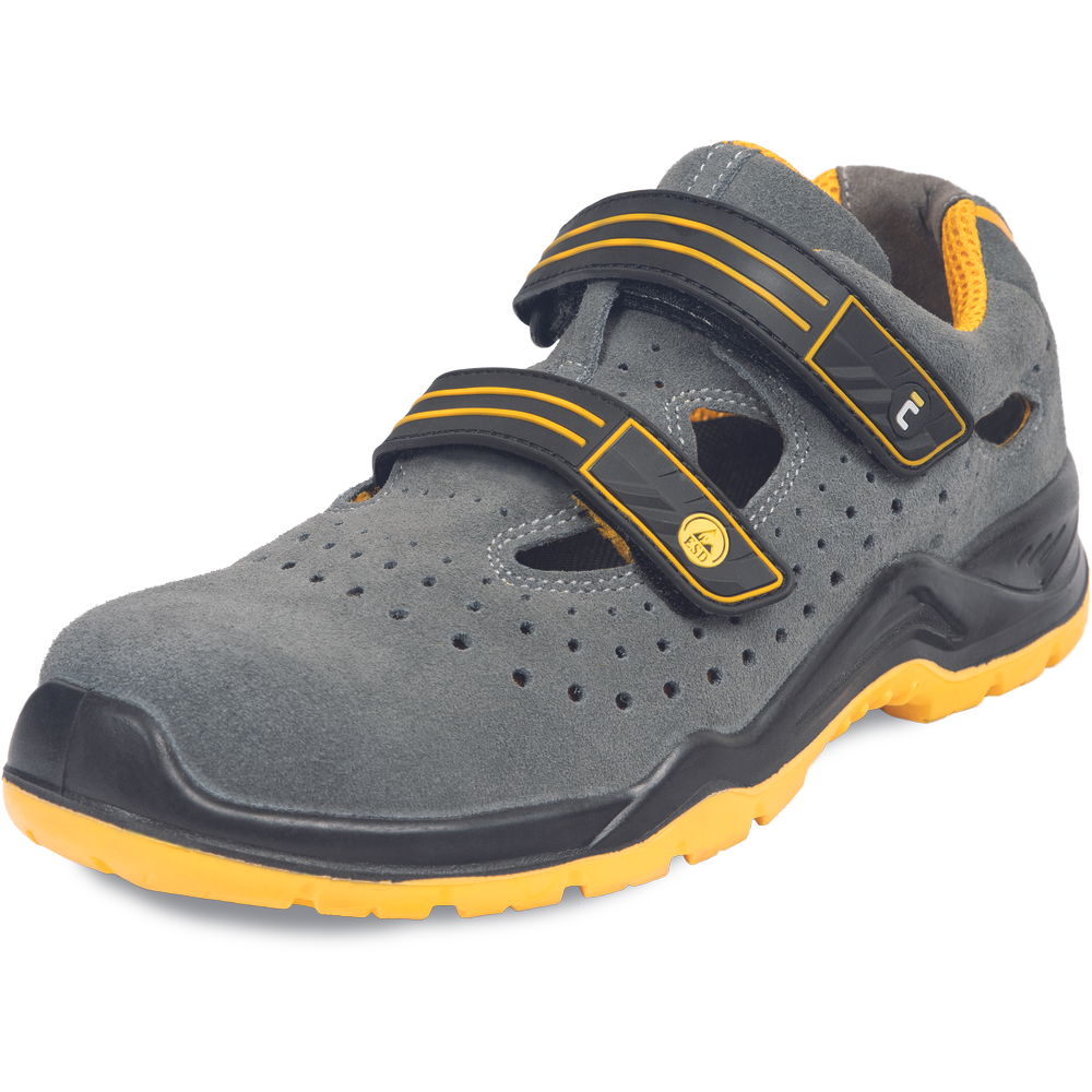 varnostni sandal s kompozitnim prstom; zgornji del čevlja je izdelan iz mikrovlaken; nedrseč podplat, odporen na olje, je izdelan iz poliuretana dvojne gostote; kompozitni vložek, odporen na prebadanje; čevlji ne vsebujejo kovinskih delov in so opremljeni s funkcijo ESD