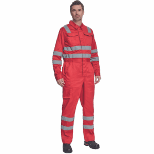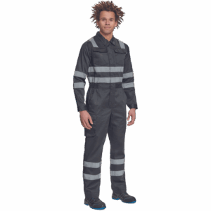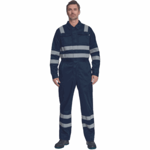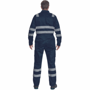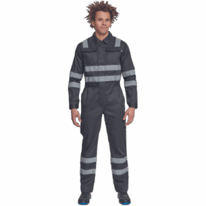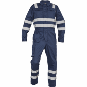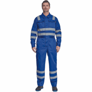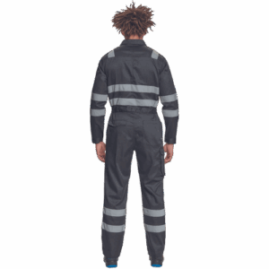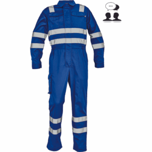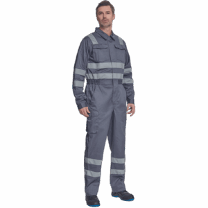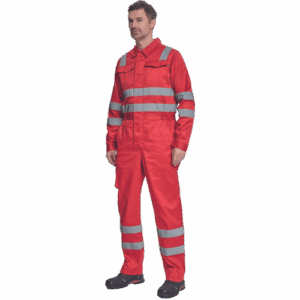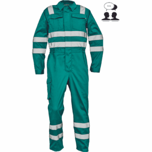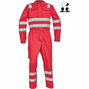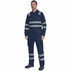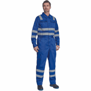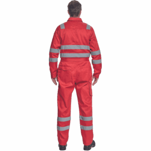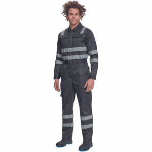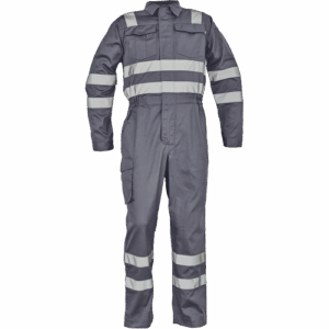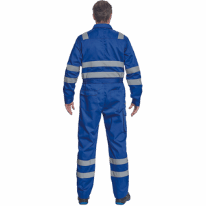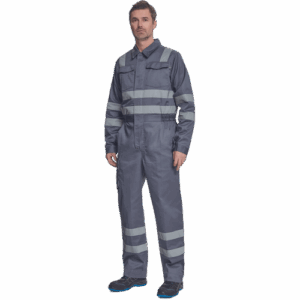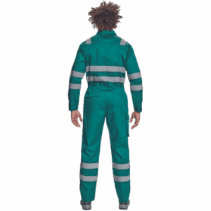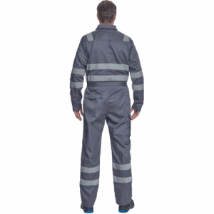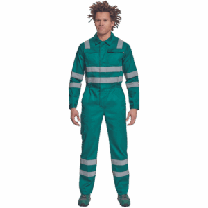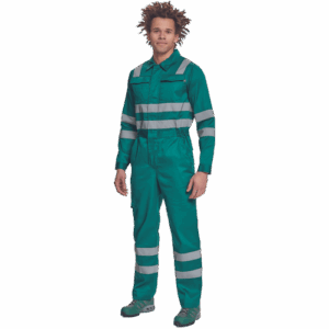 – moška delovna lahka kombinezona z odsevnimi črtami na ramenih in okoli bokov, rokavov in spodnjega dela nog – elastičen pas, zadrga prekrita z zavihkom – 2 stranska žepa, 1 žep za kovance – 1 večnamenski žep na stegnu – 2 zadnja žepa, 2 prsna žepa z zavihkom – podaljšana dolžina nog.
