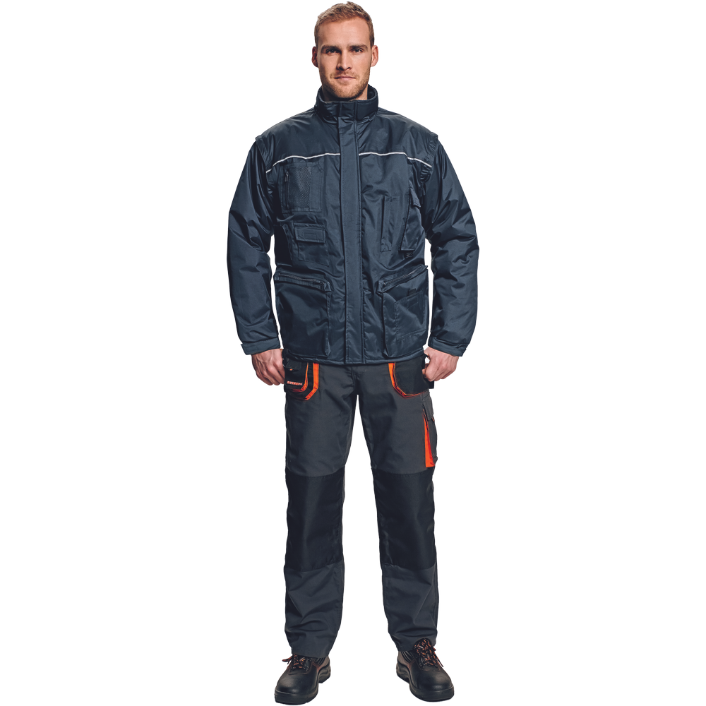 – moška izolirana zimska jakna s snemljivimi rokavi, izoliran jopič – vodoodporna tkanina – 2 stranska žepa, manjša prsna žepa – nastavljiv rob rokavov z velcro – odsevni elementi