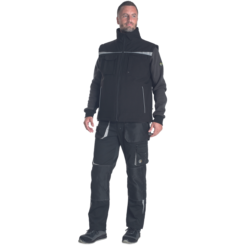 – zimska jopa z zadrgo – dva stranska žepa z zadrgo – levi prsni žep z zadrgo – prsni žep za mobilni telefon z zavihkom na velcro – dva notranja žepa – odsevni elementi in cevi