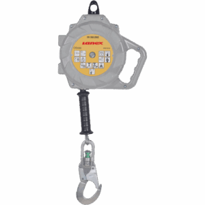Retractable fall arrester for vertical work. Lengths from 6 to 15m. Materal of cover plastic composite. Material of mechanism and rope galvanized steel. Max. weight of person 140 kg. Weight 3,9-4,9kg EN360